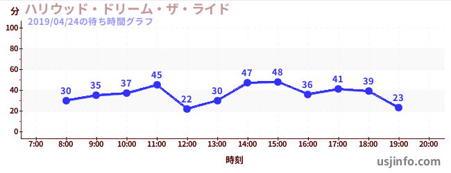 • ハリウッド・ドリーム・ザ・ライド$B$N(B2019年04月24日の待ち時間