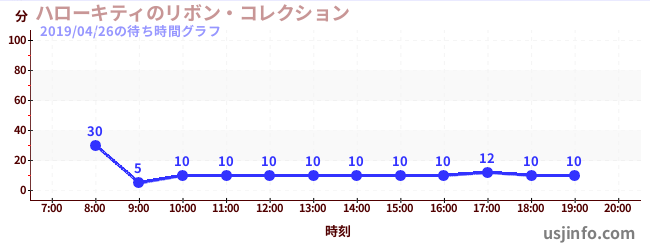 • ハローキティのリボン・コレクション$B$N(B2019年04月26日の待ち時間