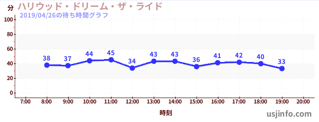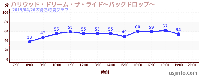 • ハリウッド・ドリーム・ザ・ライド$B$N(B2019年04月26日の待ち時間