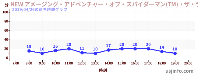 • NEW アメージング・アドベンチャー・オブ・スパイダーマン(TM)・ザ・ライド 4K3D$B$N(B2019年04月26日の待ち時間