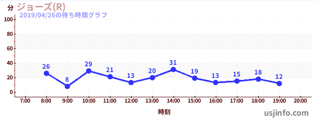 • ジョーズ(R)$B$N(B2019年04月26日の待ち時間