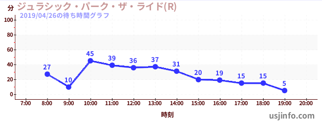 • ジュラシック・パーク・ザ・ライド(R)$B$N(B2019年04月26日の待ち時間