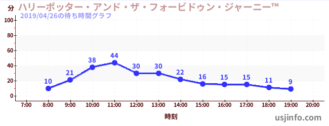 • ハリーポッター・アンド・ザ・フォービドゥン・ジャーニー™$B$N(B2019年04月26日の待ち時間