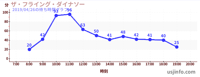 • ザ・フライング・ダイナソー$B$N(B2019年04月26日の待ち時間