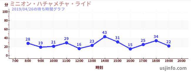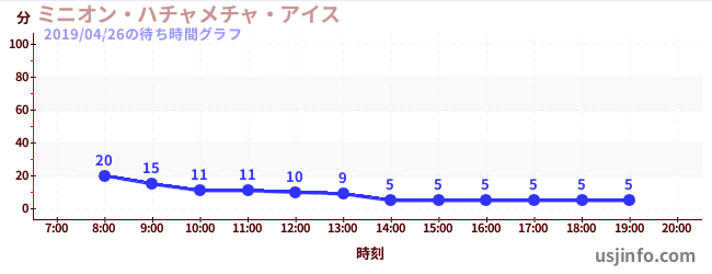 • ミニオン・ハチャメチャ・ライド$B$N(B2019年04月26日の待ち時間