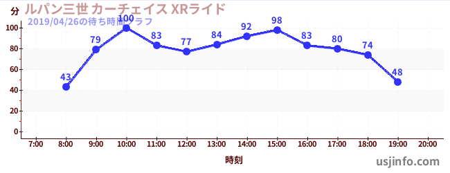 • ルパン三世 カーチェイス XRライド$B$N(B2019年04月26日の待ち時間
