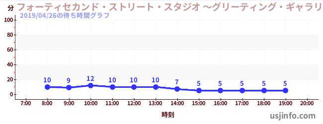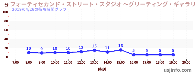 • フォーティセカンド・ストリート・スタジオ ~グリーティング・ギャラリー~ ミニオン$B$N(B2019年04月26日の待ち時間