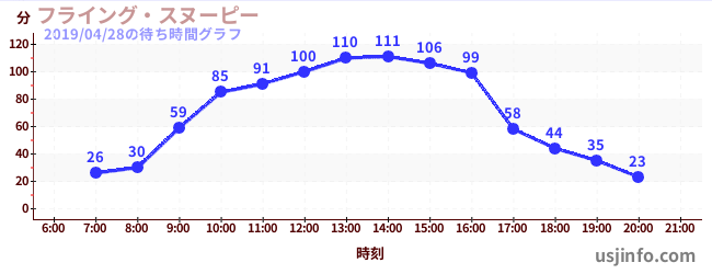 • フライング・スヌーピー$B$N(B2019年04月28日の待ち時間