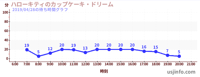 • ハローキティのカップケーキ・ドリーム$B$N(B2019年04月28日の待ち時間