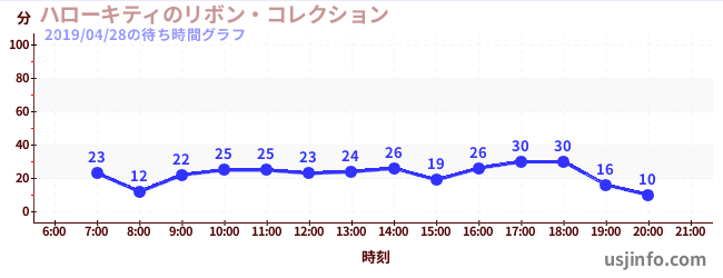 • ハローキティのリボン・コレクション$B$N(B2019年04月28日の待ち時間