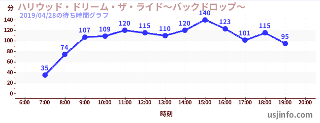 • ハリウッド・ドリーム・ザ・ライド〜バックドロップ〜$B$N(B2019年04月28日の待ち時間