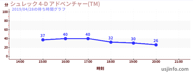 • シュレック 4-D アドベンチャー(TM)$B$N(B2019年04月28日の待ち時間