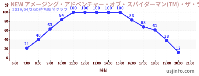 • NEW アメージング・アドベンチャー・オブ・スパイダーマン(TM)・ザ・ライド 4K3D$B$N(B2019年04月28日の待ち時間