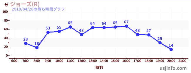 • ジョーズ(R)$B$N(B2019年04月28日の待ち時間