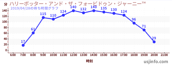 • ハリーポッター・アンド・ザ・フォービドゥン・ジャーニー™$B$N(B2019年04月28日の待ち時間