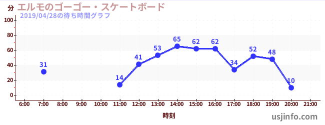 • エルモのゴーゴー・スケートボード$B$N(B2019年04月28日の待ち時間