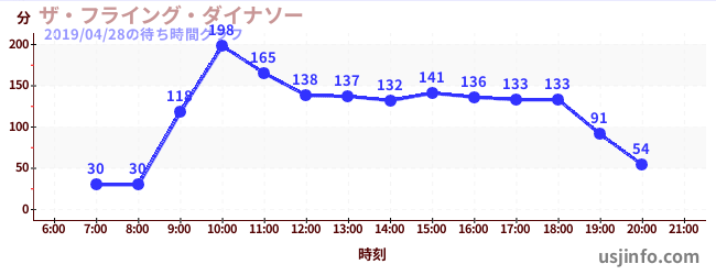 • ザ・フライング・ダイナソー$B$N(B2019年04月28日の待ち時間