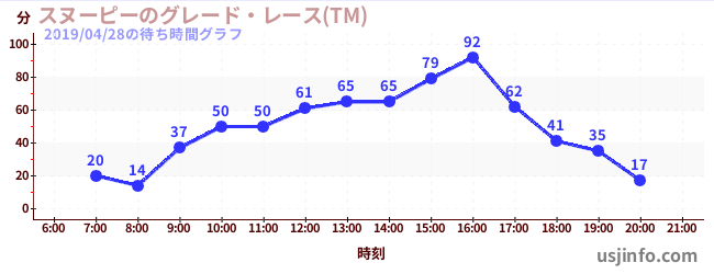 • スヌーピーのグレード・レース(TM)$B$N(B2019年04月28日の待ち時間