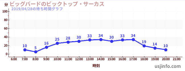 • ビッグバードのビックトップ・サーカス$B$N(B2019年04月28日の待ち時間