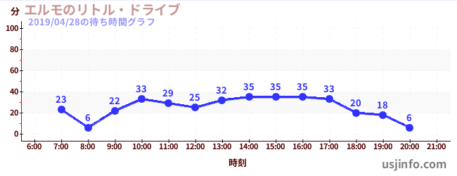 • エルモのリトル・ドライブ$B$N(B2019年04月28日の待ち時間