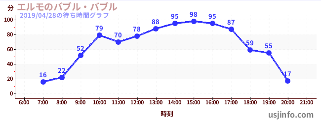 • エルモのバブル・バブル$B$N(B2019年04月28日の待ち時間