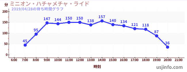 • ミニオン・ハチャメチャ・ライド$B$N(B2019年04月28日の待ち時間