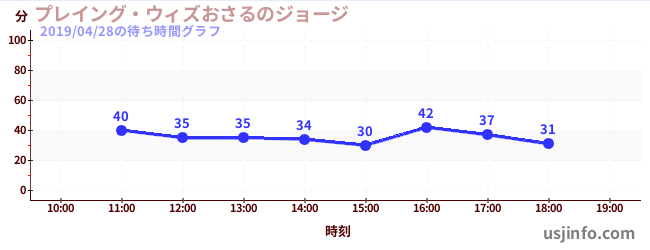 • プレイング・ウィズおさるのジョージ$B$N(B2019年04月28日の待ち時間