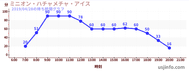 • ミニオン・ハチャメチャ・アイス$B$N(B2019年04月28日の待ち時間