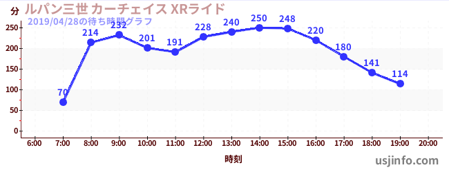 • ルパン三世 カーチェイス XRライド$B$N(B2019年04月28日の待ち時間
