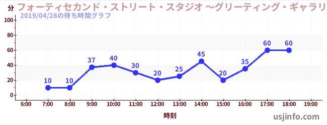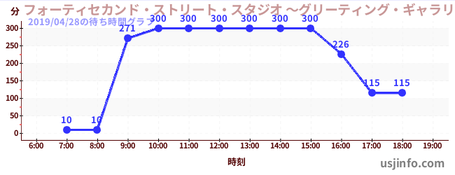 • フォーティセカンド・ストリート・スタジオ ~グリーティング・ギャラリー~ ミニオン$B$N(B2019年04月28日の待ち時間