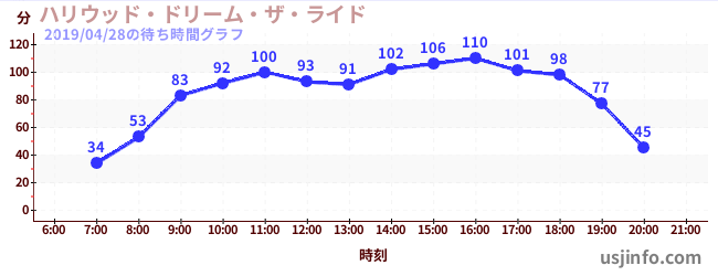 • ハリウッド・ドリーム・ザ・ライド$B$N(B2019年04月28日の待ち時間
