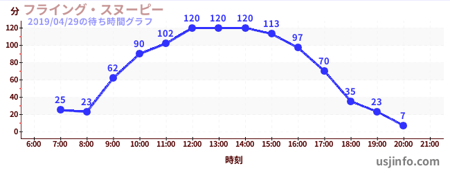 • フライング・スヌーピー$B$N(B2019年04月29日の待ち時間