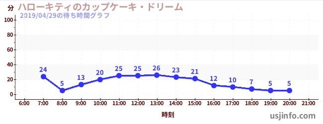 • ハローキティのカップケーキ・ドリーム$B$N(B2019年04月29日の待ち時間