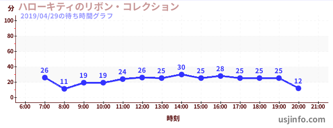 • ハローキティのリボン・コレクション$B$N(B2019年04月29日の待ち時間