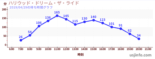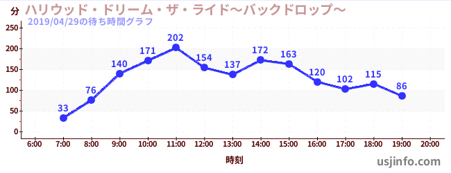 • ハリウッド・ドリーム・ザ・ライド〜バックドロップ〜$B$N(B2019年04月29日の待ち時間