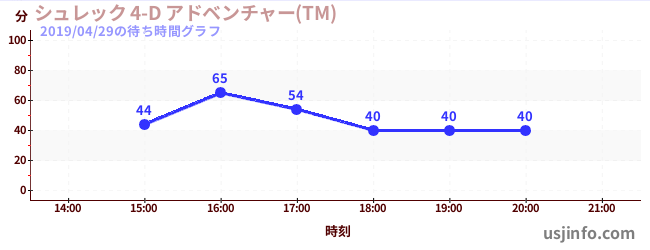 • シュレック 4-D アドベンチャー(TM)$B$N(B2019年04月29日の待ち時間