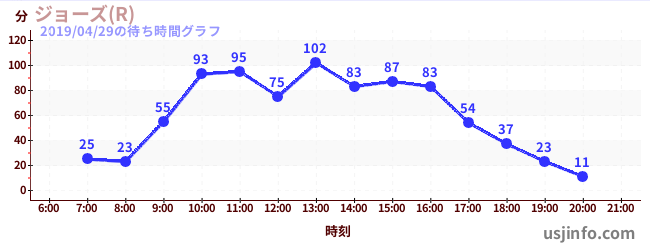 • ジョーズ(R)$B$N(B2019年04月29日の待ち時間