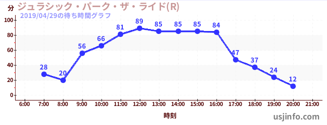 • ジュラシック・パーク・ザ・ライド(R)$B$N(B2019年04月29日の待ち時間
