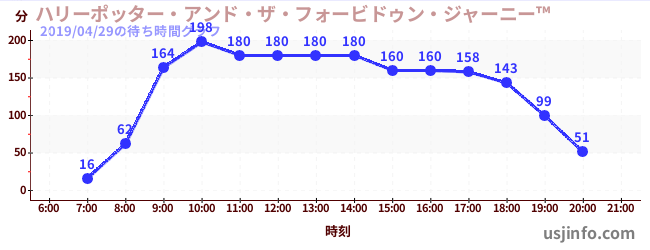 • ハリーポッター・アンド・ザ・フォービドゥン・ジャーニー™$B$N(B2019年04月29日の待ち時間