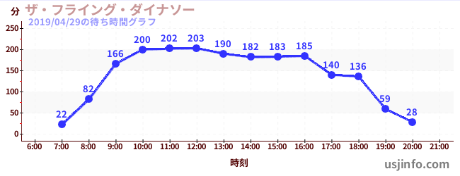 • ザ・フライング・ダイナソー$B$N(B2019年04月29日の待ち時間
