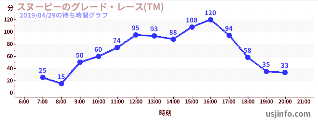• スヌーピーのグレード・レース(TM)$B$N(B2019年04月29日の待ち時間