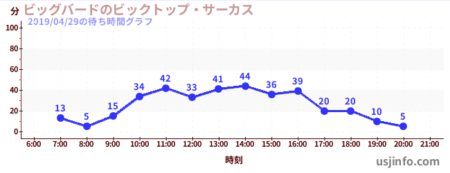 • ビッグバードのビックトップ・サーカス$B$N(B2019年04月29日の待ち時間