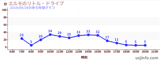 • エルモのリトル・ドライブ$B$N(B2019年04月29日の待ち時間