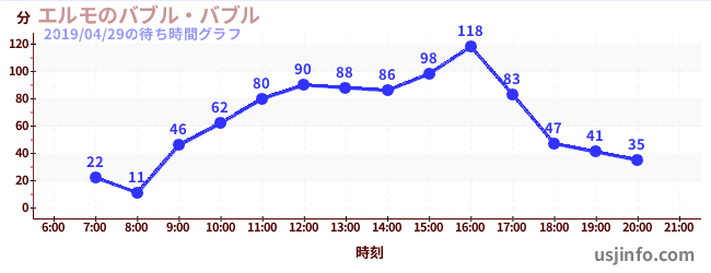 • エルモのバブル・バブル$B$N(B2019年04月29日の待ち時間