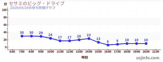 • セサミのビッグ・ドライブ$B$N(B2019年04月29日の待ち時間