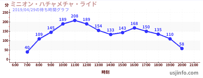 • ミニオン・ハチャメチャ・ライド$B$N(B2019年04月29日の待ち時間