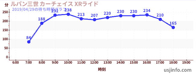 • ルパン三世 カーチェイス XRライド$B$N(B2019年04月29日の待ち時間