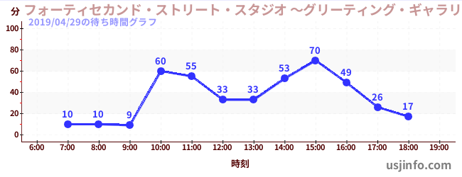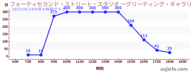 • フォーティセカンド・ストリート・スタジオ ~グリーティング・ギャラリー~ ミニオン$B$N(B2019年04月29日の待ち時間