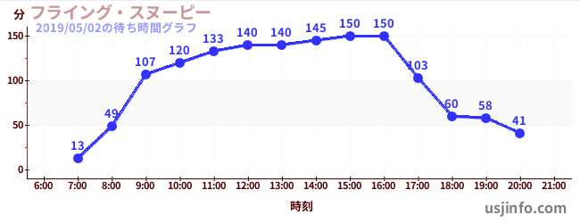 • フライング・スヌーピー$B$N(B2019年05月02日の待ち時間