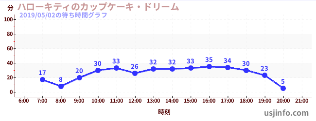 • ハローキティのカップケーキ・ドリーム$B$N(B2019年05月02日の待ち時間